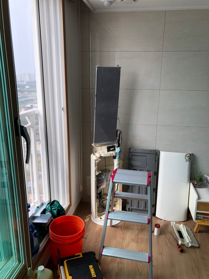 이제 더운 여름이 다가와서 에어컨 청소를 하였습니다