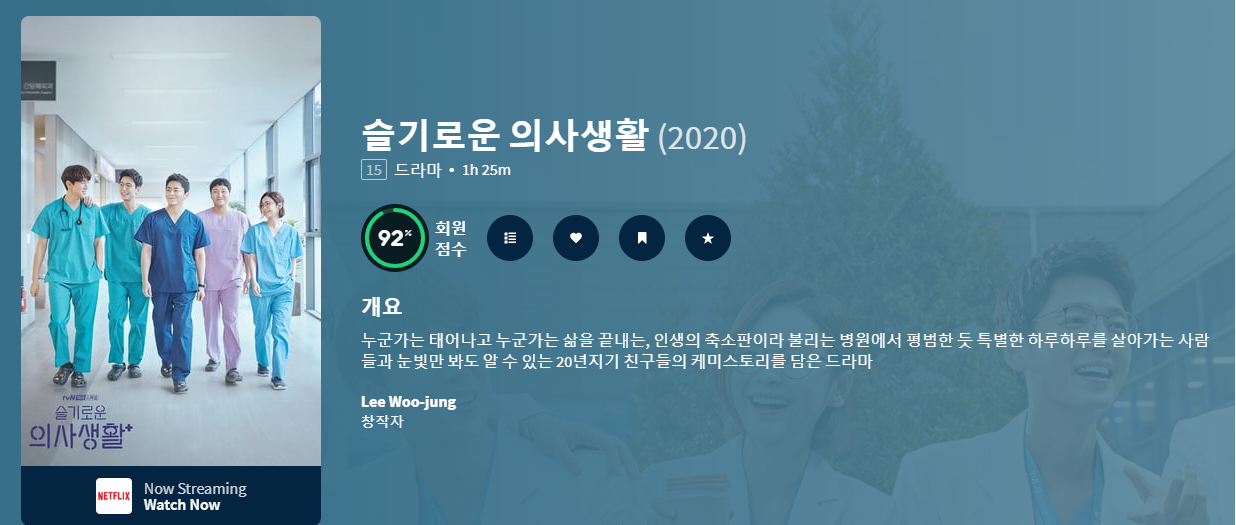 이번에 리뷰할 작품은 슬기로운 의사생활입니다