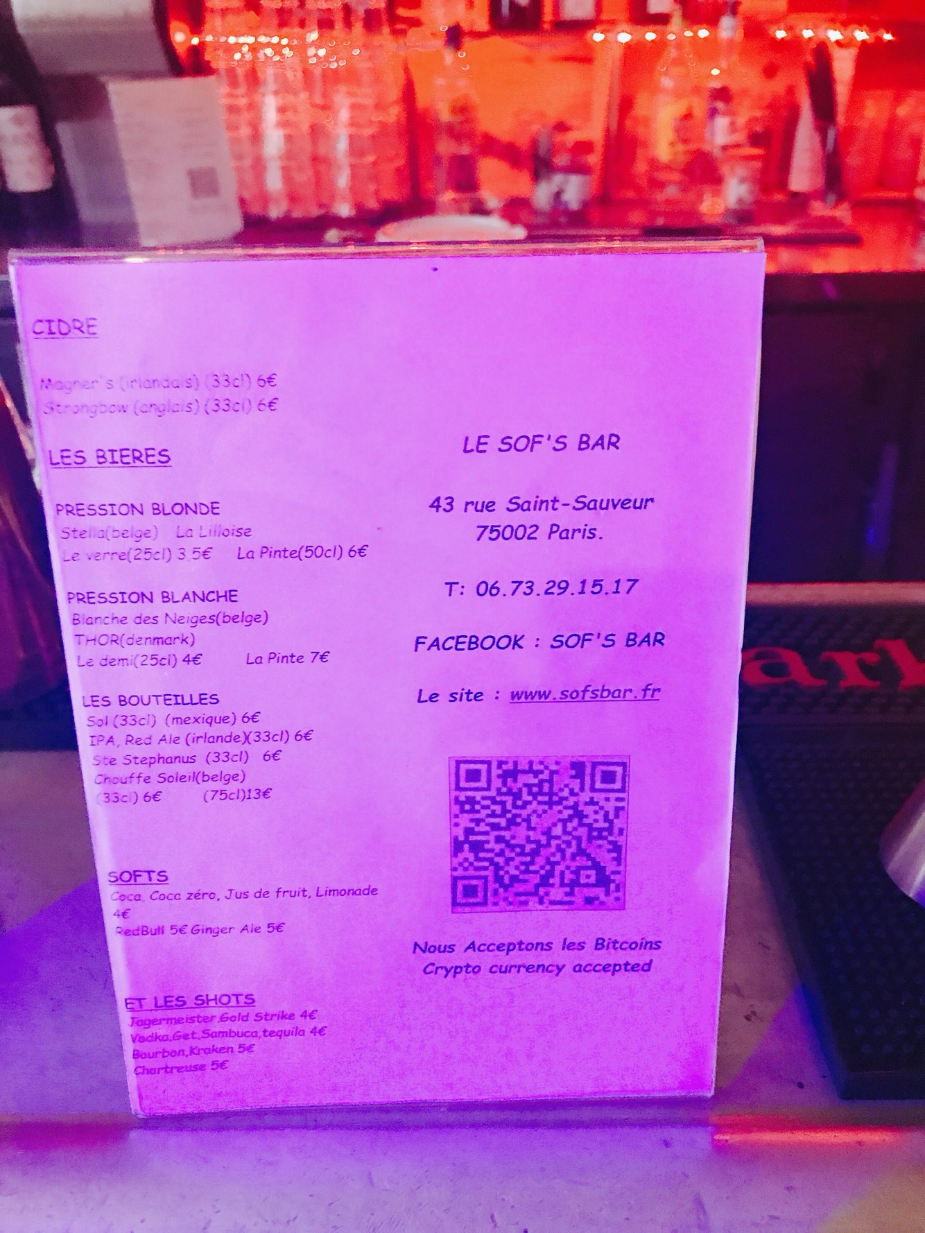 이 술집은 구글맵스 리뷰만 보더라도 전 세계 비트코인 사용자들에게 극찬을 받는 가게임을 알 수 있습니다. 이 술집에서 세계 각지의 비트코인 사용자들이 모이기도 하고, 파리 내의 비트코인 사용자들의 모임 장소로도 쓰인다고 합니다.