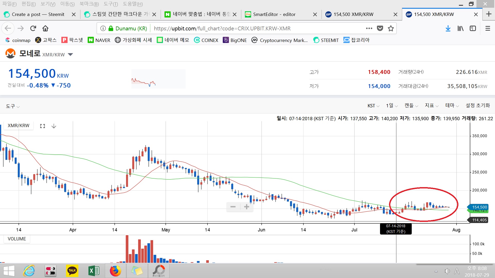 '트레이딩'의 관점에서 개인적으로는 '모네로'를 좋게 보고 있다고 하셨었습니다. 당시가 7월 15일 이였고 지금 차트를 보니까 좋은 판단이였던 것 같습니다. (물론 최근 전반적으로 모든 가상화폐가 상승하긴 했습니다.)