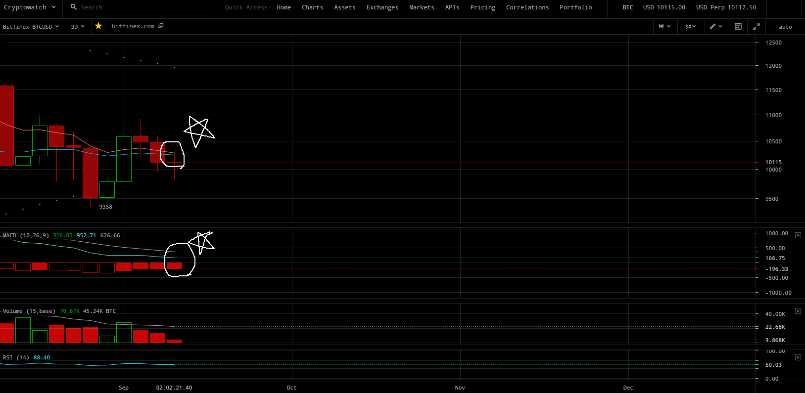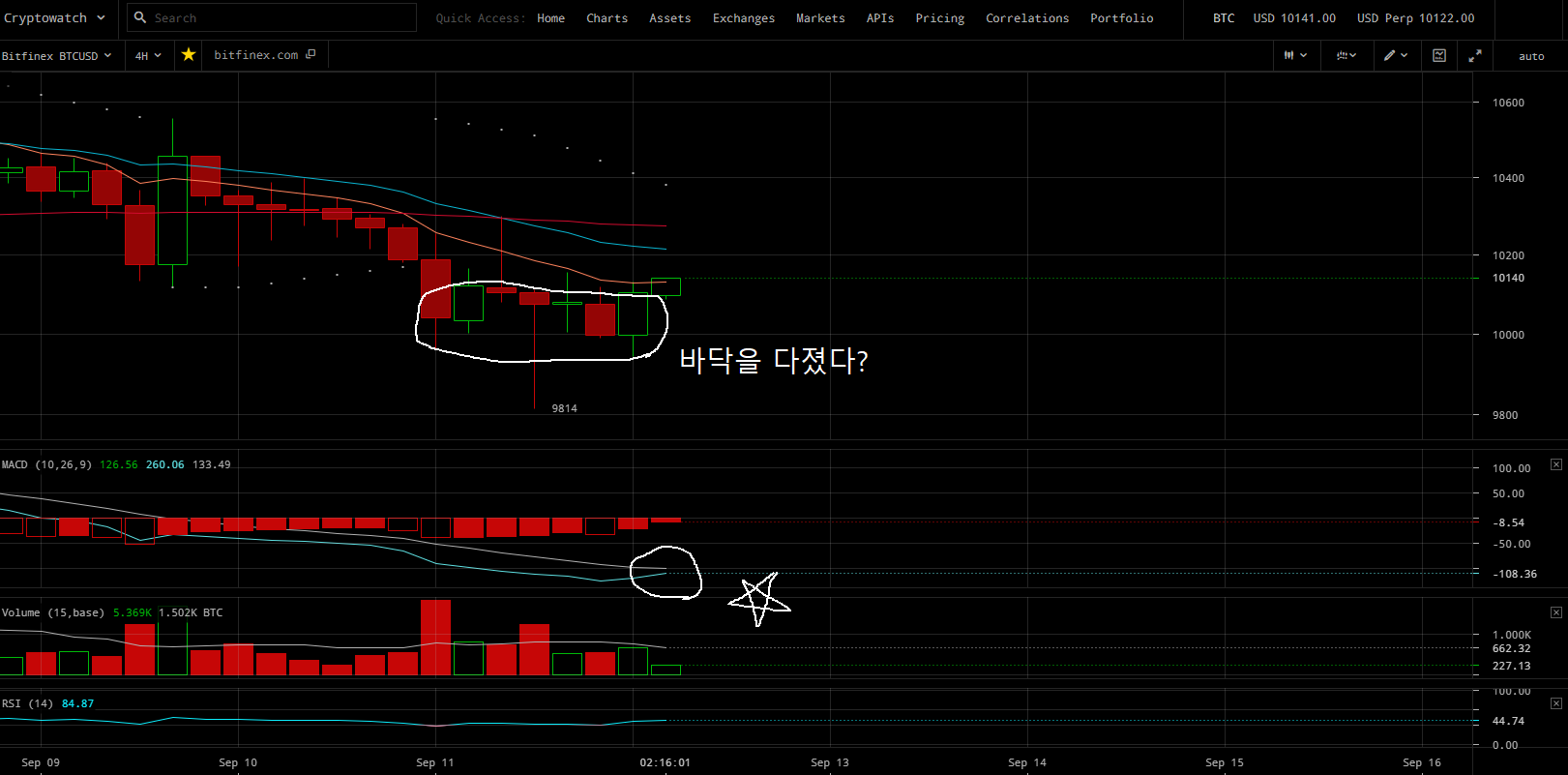 그렇기 때문에 현재 3일봉이 마감이 되는 9월 14일 아침 9시까지가 매우 중요합니다! 최소한 10,100$ 위에서 마감을 해줘야 하락세로 갈 확률이 줄어들게 됩니다.