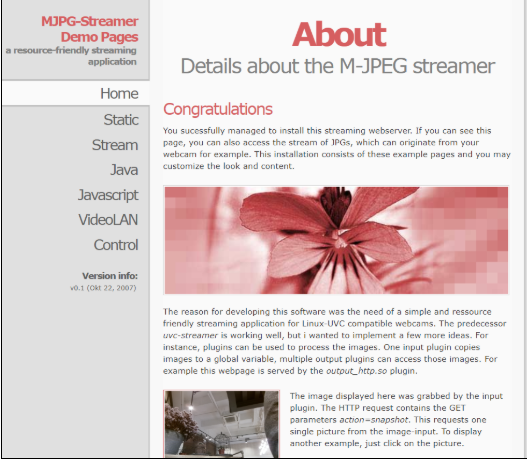localhost:8090으로 접속하면 mjpg-streamer admin화면이 나옵니다