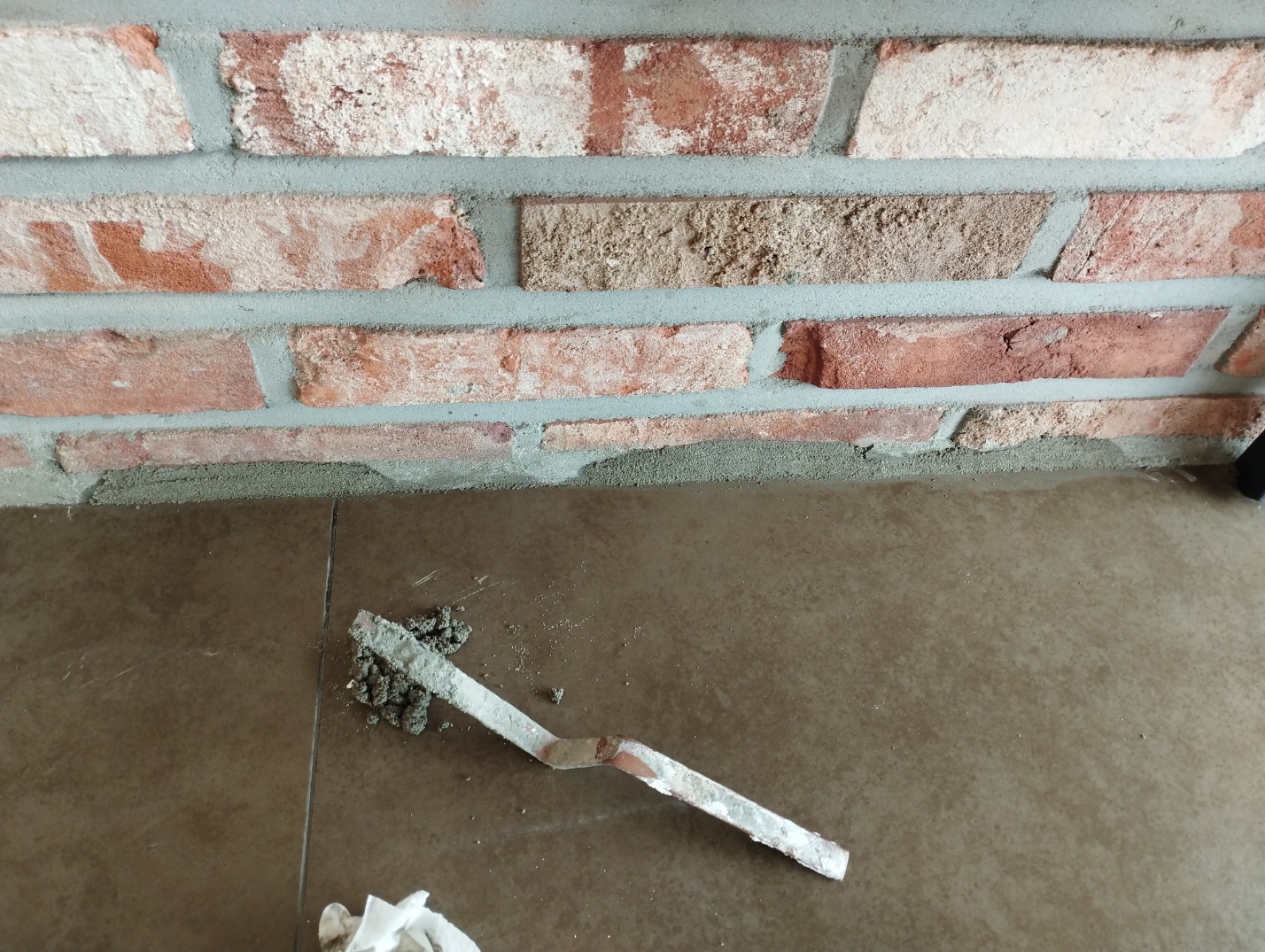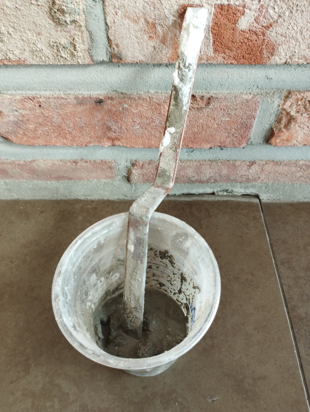 이런 날에는 카페 이 곳 저 곳 손 볼 곳에 손을 보는데, 카페 2층에 벽돌 아래 부분에 벽시멘트가 깨져 있는 부분을 보수 했습니다.