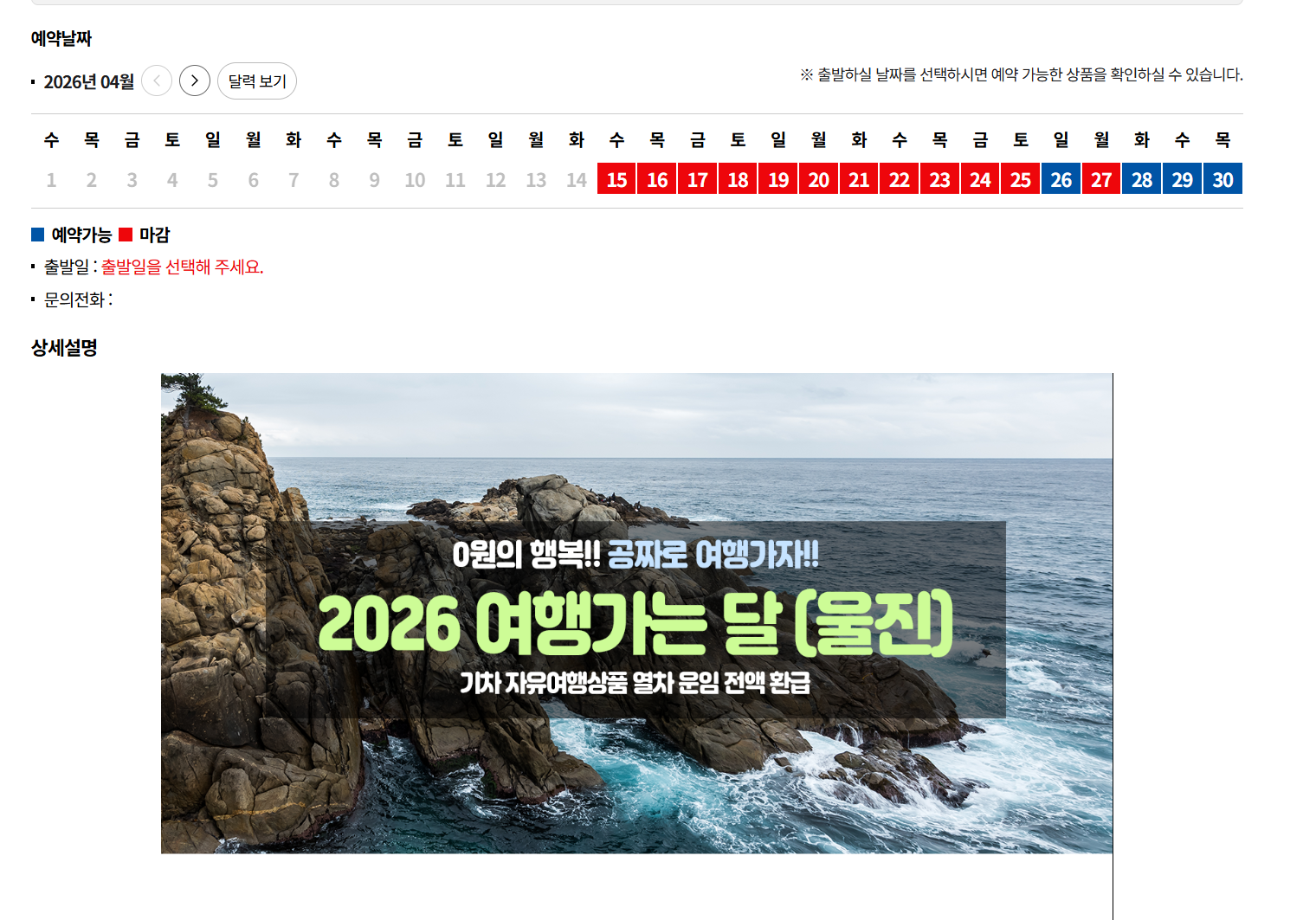울진은 기차 여행 경비 전액 할인 해 준다고 하네요.