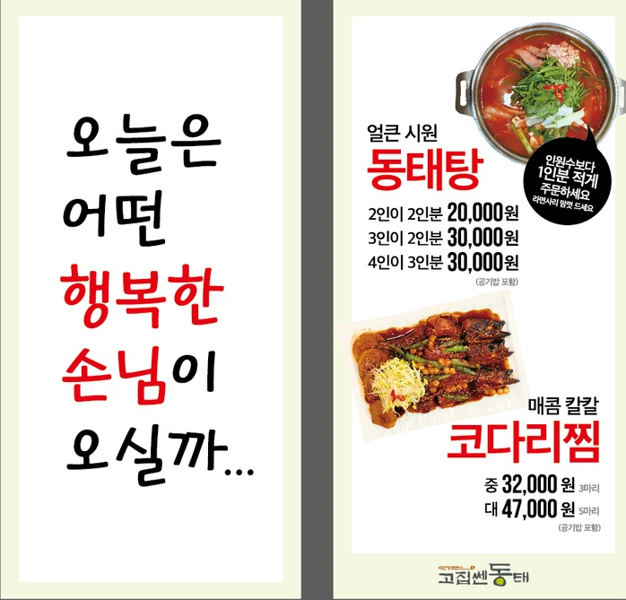 집밥 정성을 담은 동태탕과 찜 (코다리)전문점으로