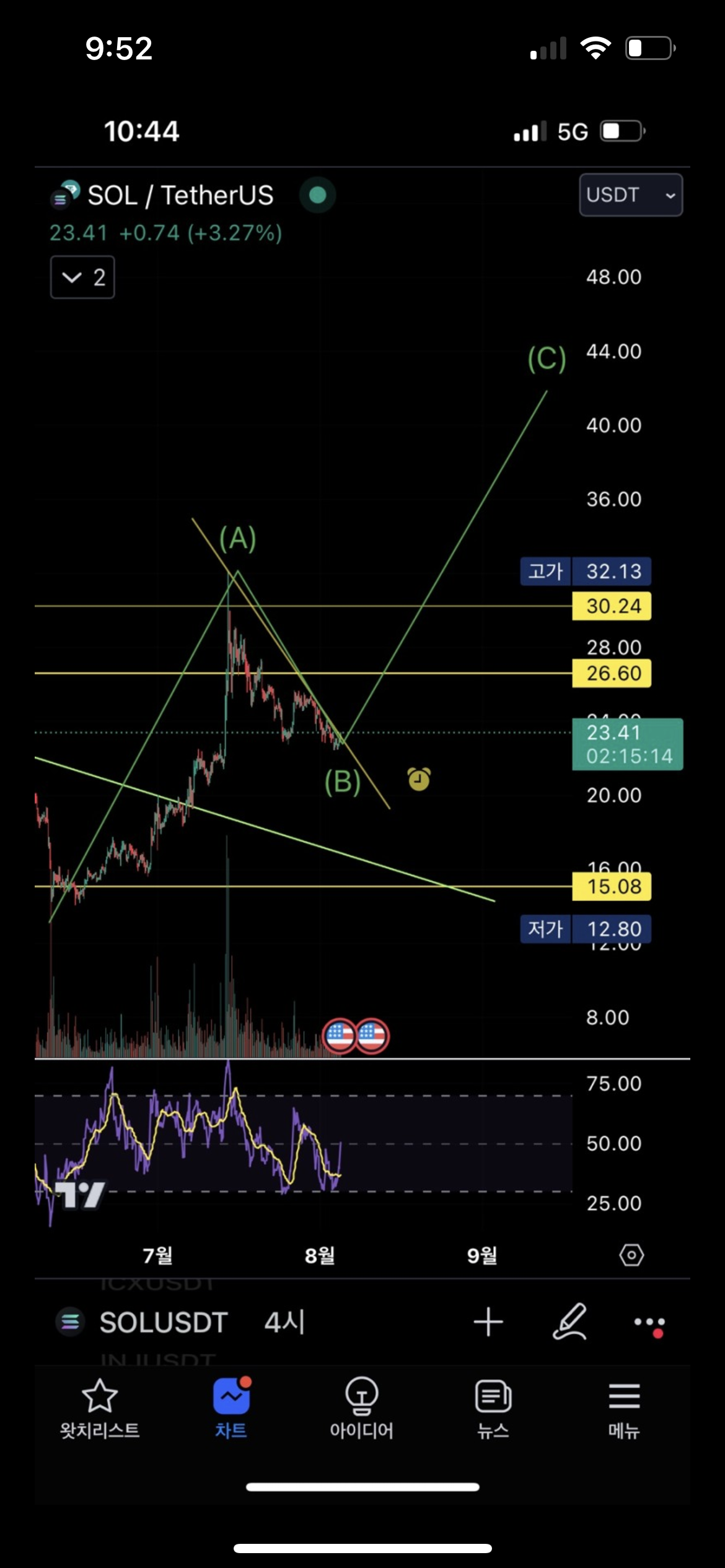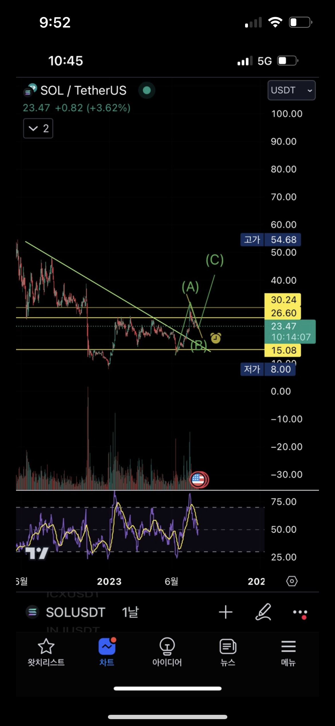 솔라나 차트 분석하기 feat. 비트가 C파 상승 한다는 가정
