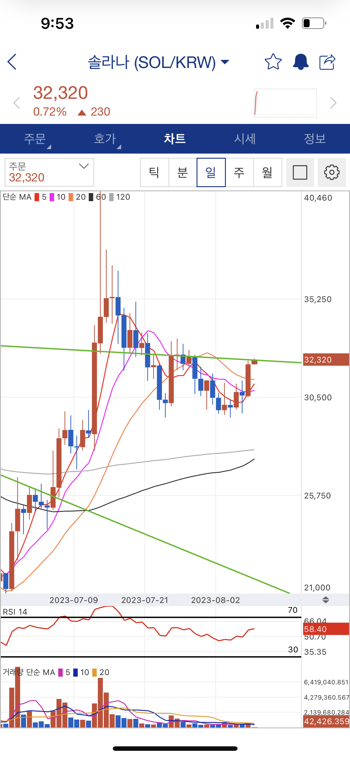 일봉상 하락추세 돌파 후