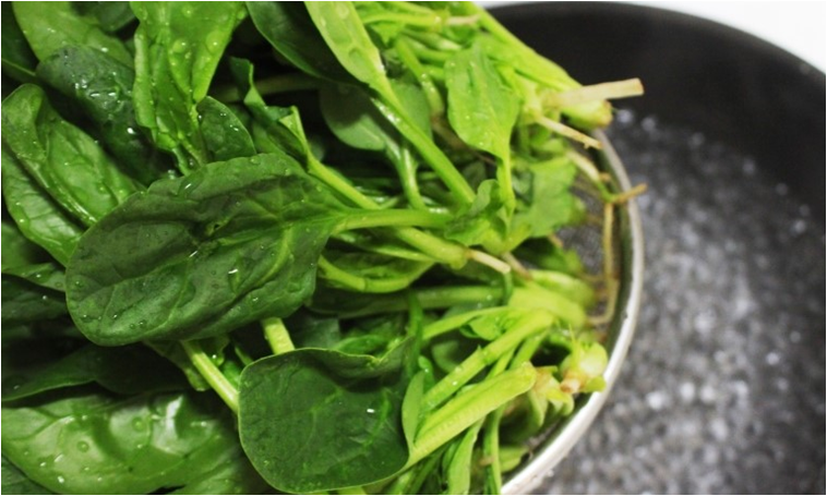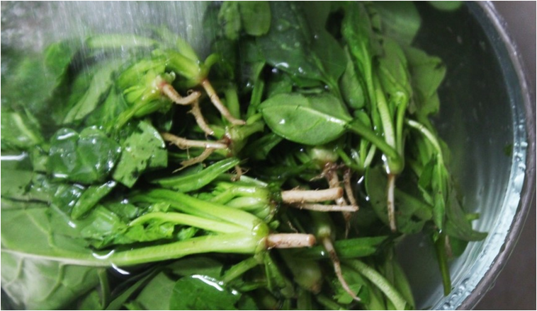 시금치에 묻은 흙을 제거 해주기 위해 식초를 몇방울 떨어뜨린 물에서 세척을 해요