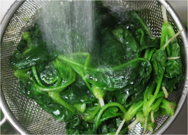 빨리 행궈줘야 시금치의 아삭한 식감이 남아 있게되더라구요^^