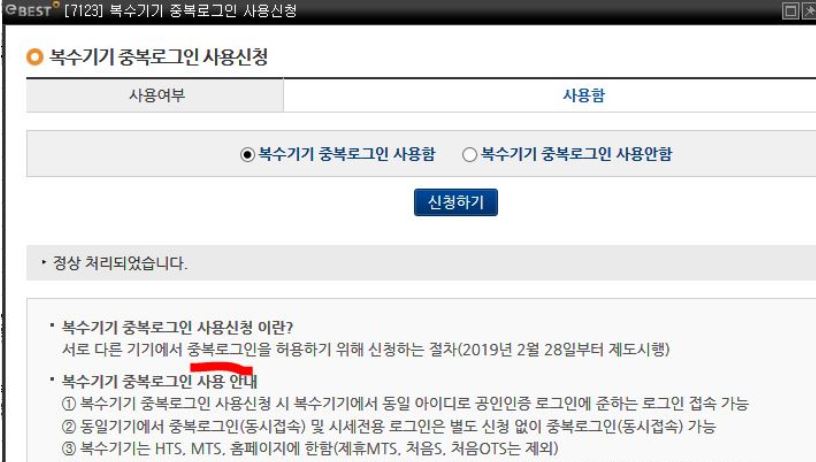 이베스트증권 중복접속 화면(복수기기,중복로그인 사용신청) 7123화면