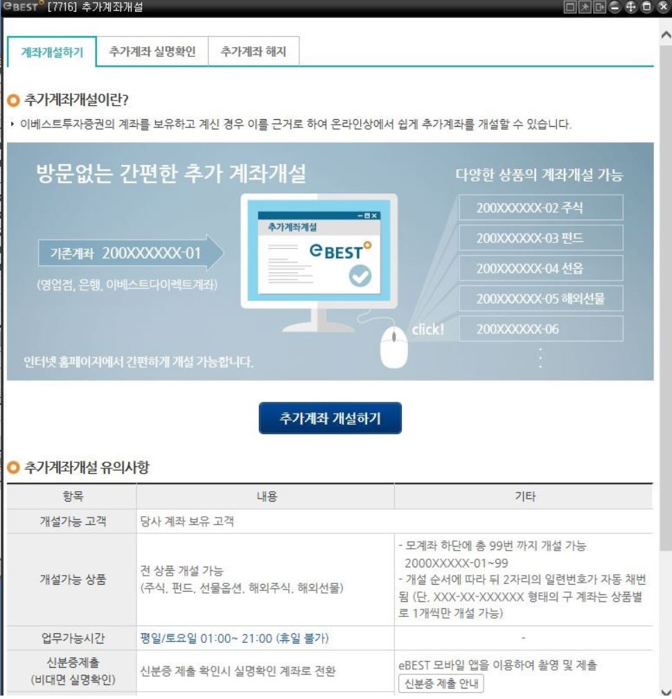 이베스트증권 선물옵션,파생 추가계좌개설 HTS 7716 화면