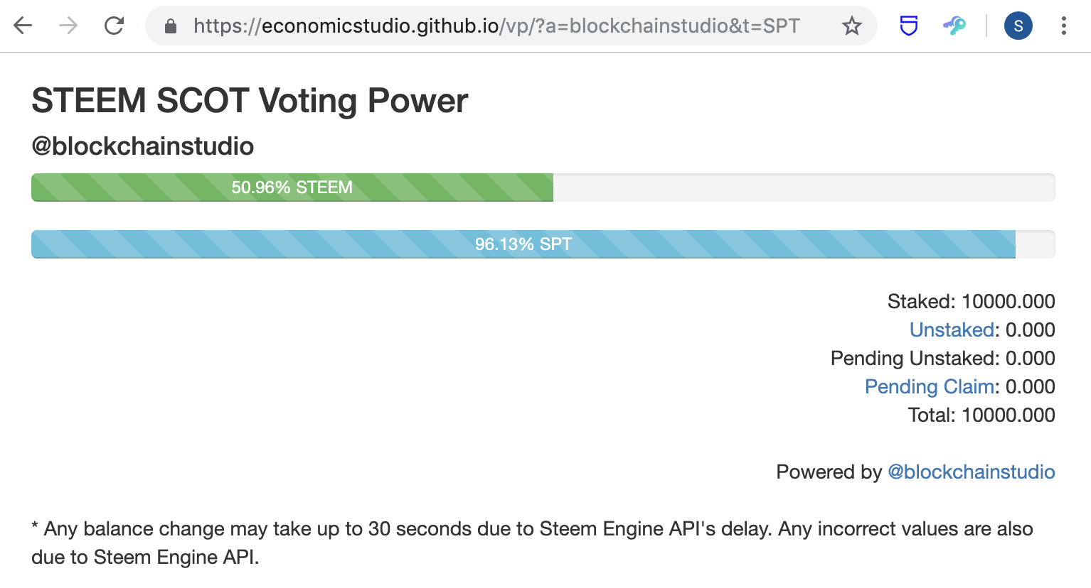 즉 부계정을 써서 100% 싱크 맞추고 출발하면 부계정 스팀 보팅파워 = 해당 SCOT 보팅파워가 되는 매우 큰 편리함이 있습니다.