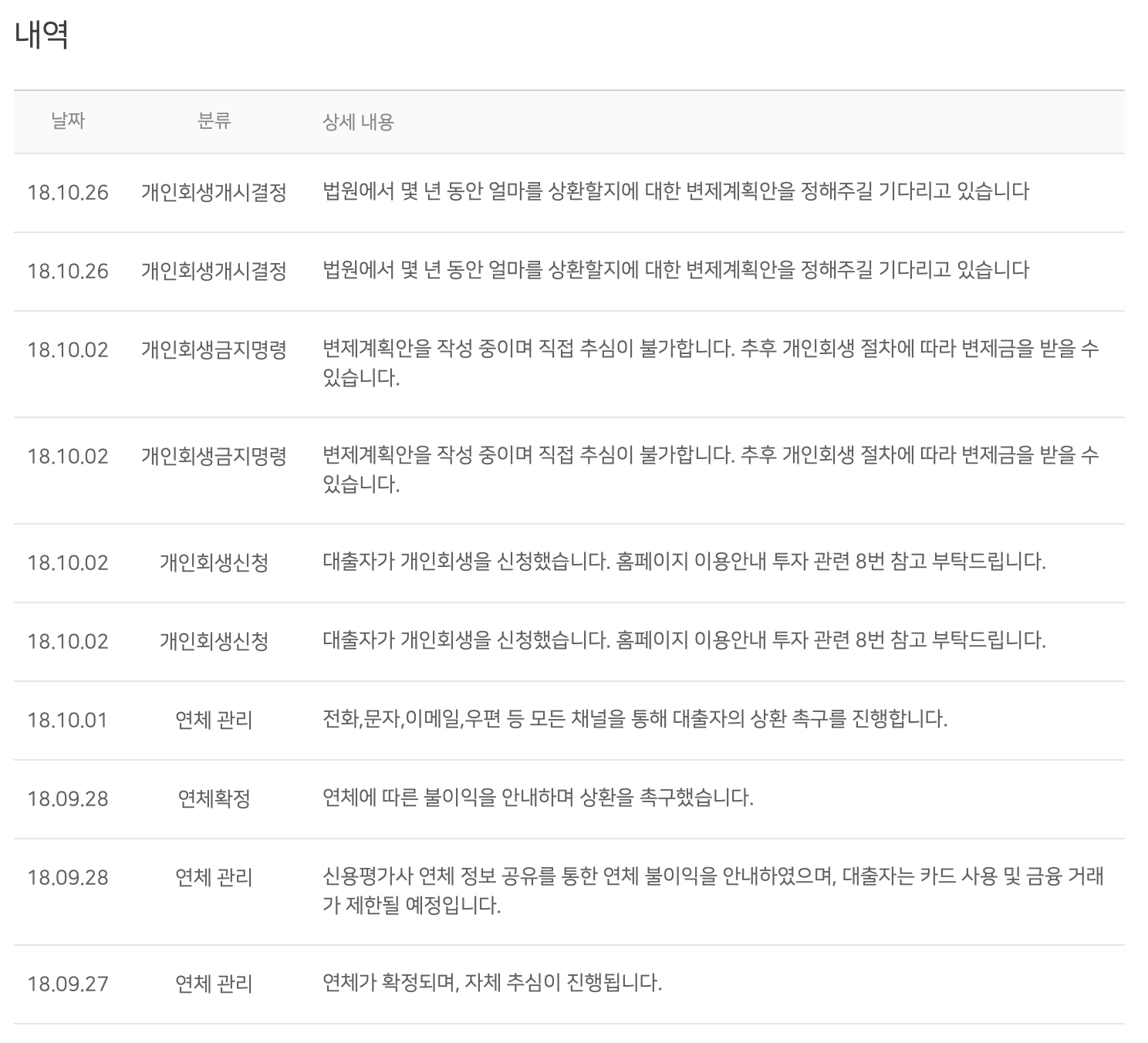 특히 연체나 개인회생 같은 큰 이벤트들은 좀 알려줘야 하는 거 아닌가?
