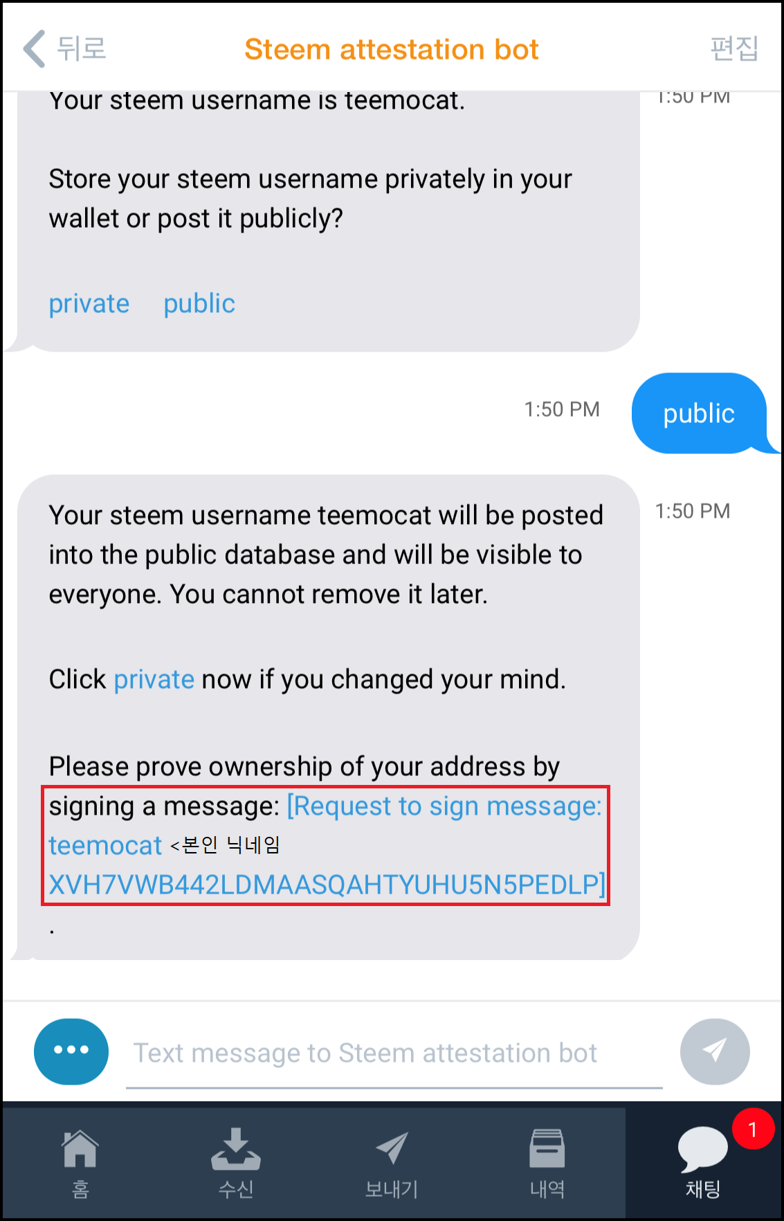 마지막 메세지 온거에서 사인 누르시면 됩니다!!!