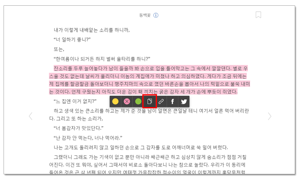 마음에 드는 문구에 하이라이트하고 복사를 누릅니다.