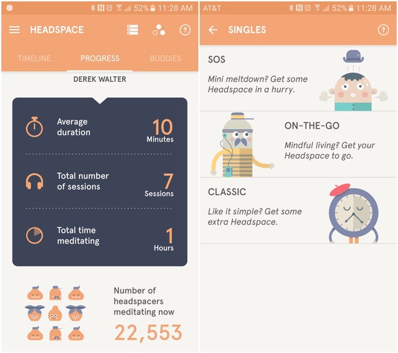 <헤드스페이스>는 한때 출가해 명상수행을 했던 앤디 퍼디컴이 만든 명상 앱이다. <헤드스페이스>는 호흡 연습과 시각화를 통해 명상하는 방법을 알려주는 명상으로 헐리우드 스타들이나 월스트리트 임직원들을 중심으로 큰 인기를 모으고 있다. 현재 850만명 이상의 활성 이용자들이 이용하고 있는 것으로 알려진 앱이다.
