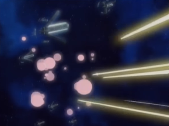 전투 초반엔 압도적인 물량으로 연방군이 지온군을 압박하는 형태였습니다. 이때만 해도 모빌슈트가 상당히 구형이라 전함을 따라잡지 못했기 때문에 피해를 감수하면서도 6개의 함대들로 압박하는 전략을 사용하는 연방군이 우세한 상황이었죠. 전황이 유리하게 흘러가는 것을 안 레빌 중장이 2,3,4,6 함대를 최대 속력으로 돌격하여 십자포화를 하는 전략을 사용하게 되죠.