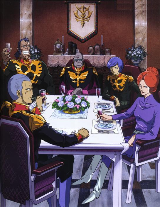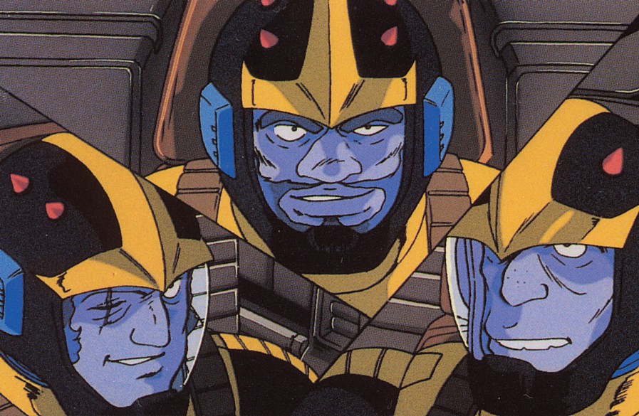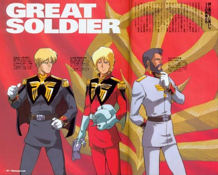 | (왼쪽부터) '루움 전역 '에서 활약한 지온의 에이스 '죠니 라이덴 ' '샤아 아즈나블 ' '신 마츠나가 '