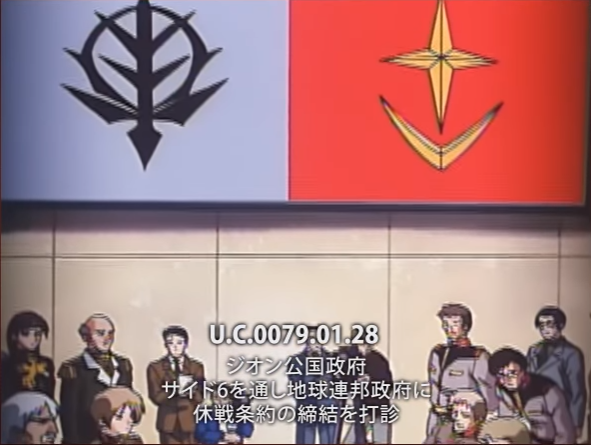 | 휴전협정을 진행하는 '지구 연방 정부 '와 '지온 공국 '
