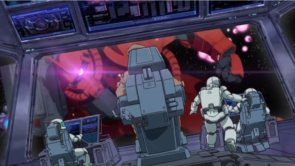 낙하하는 콜로니를 둘러싼 연방군과 지온군의 전투가 치열해지던 U.C. 0079년 01월 09일 22시 40분, 콜로니가 낙하 저지선을 돌파하자 티안무 중장은 결국 패배를 인정하고 연방군은 물러나게 됩니다. 자브로의 고위 장성들과 연방군들이 급히 철수하게 되죠.
