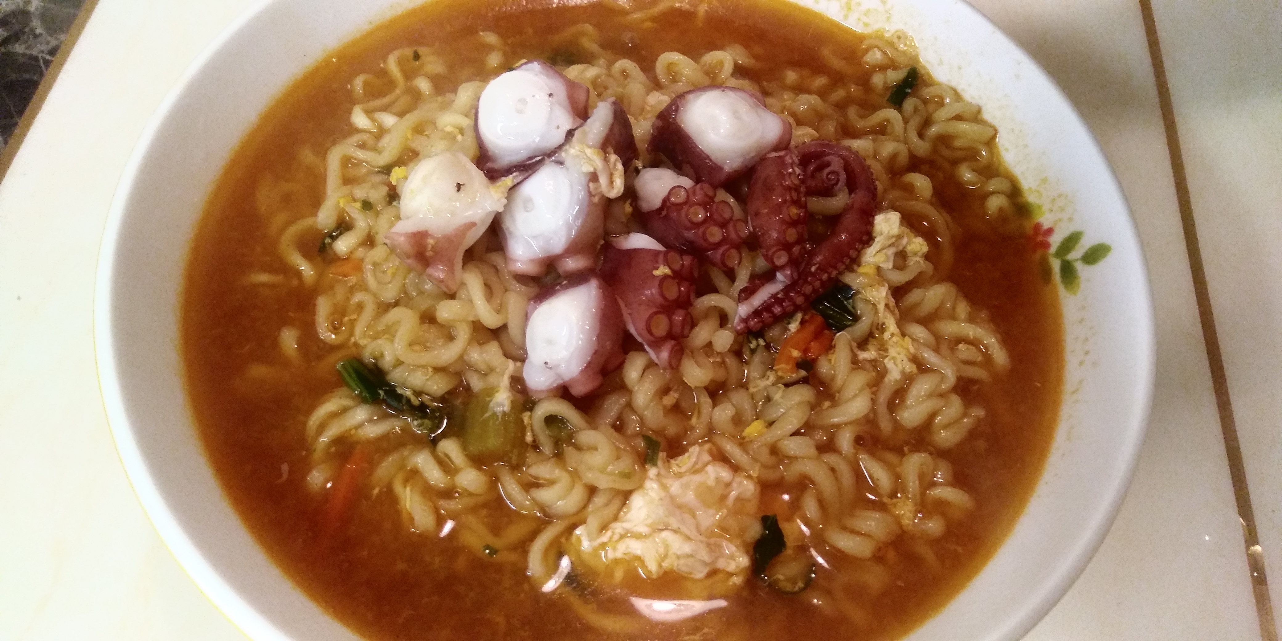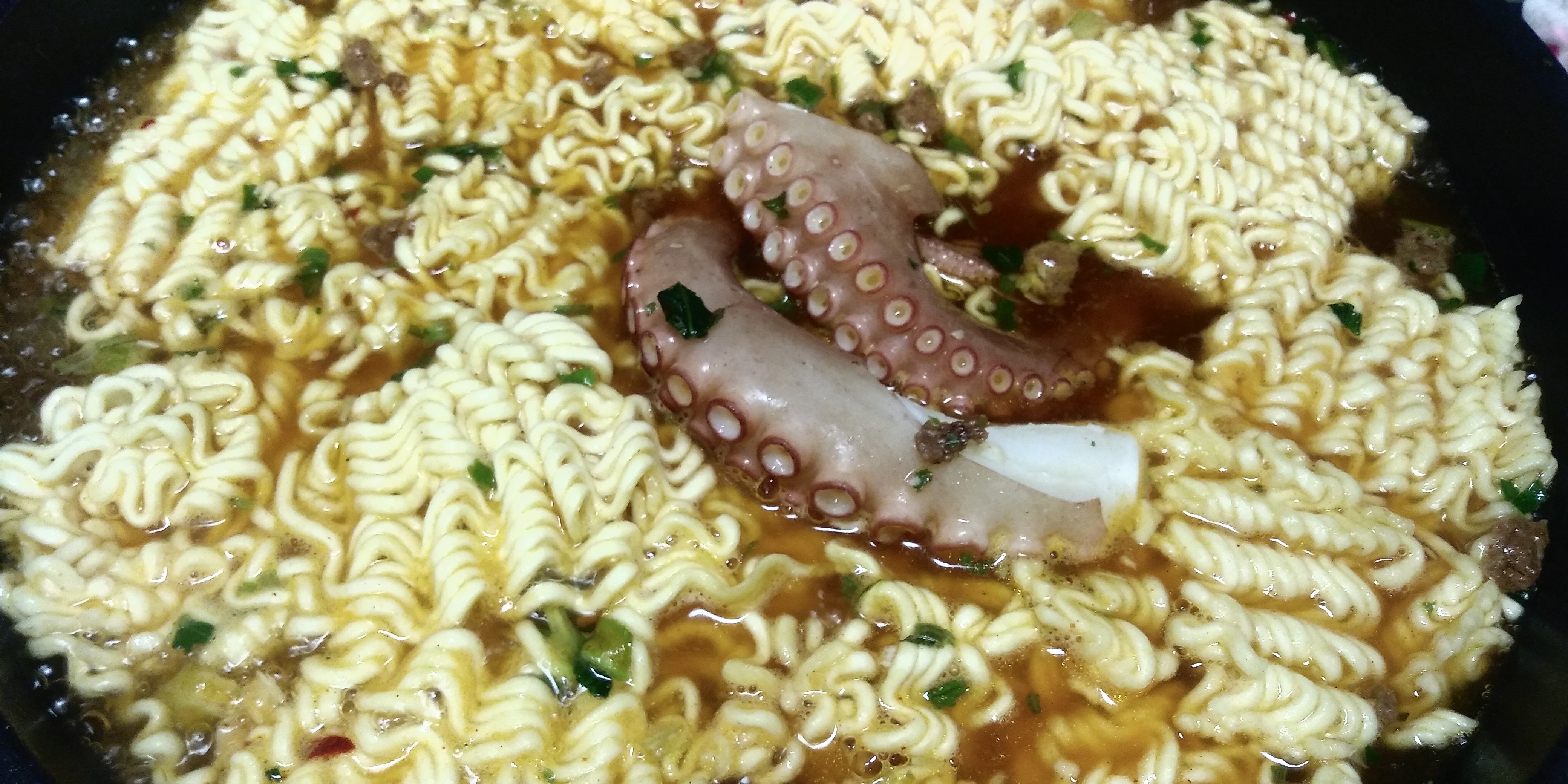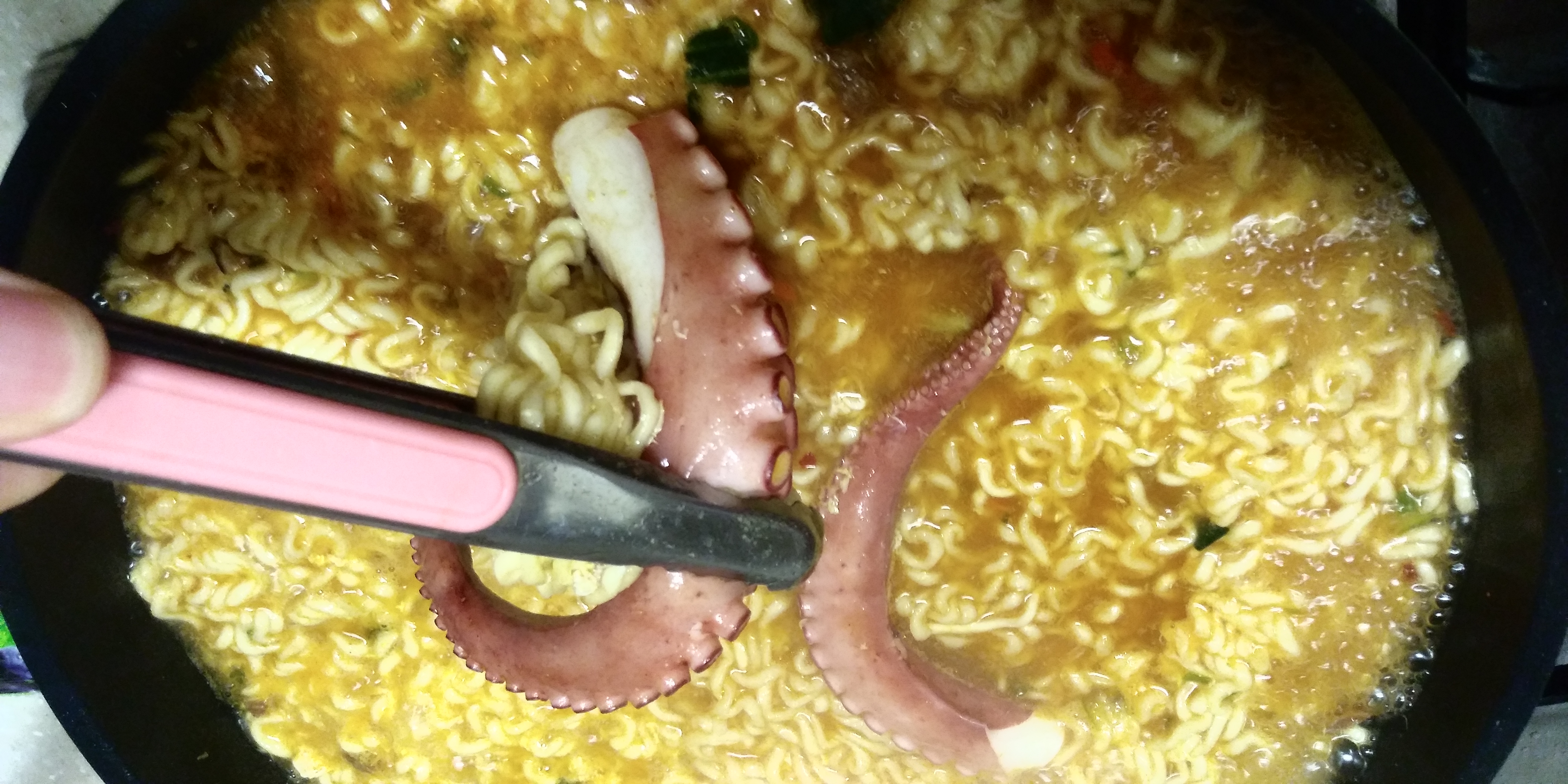문어 넣고 저녁으로 문어라면을 끓였어요..