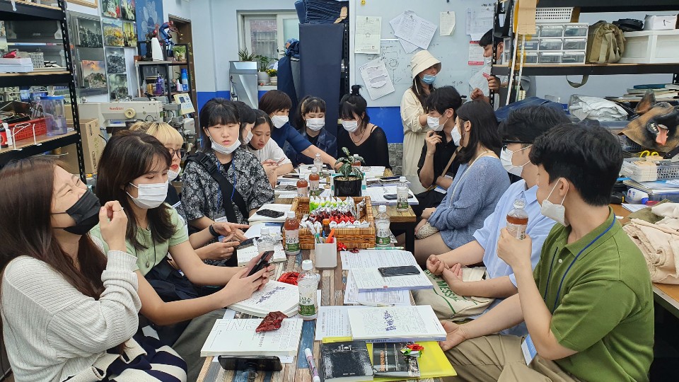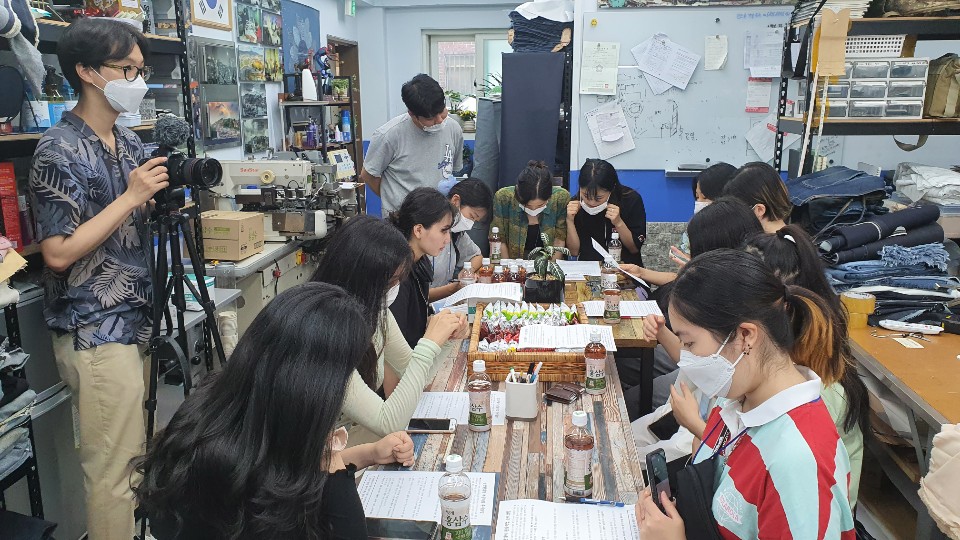 이를 위해 7월 21일, 최종 선정된 12개팀 전원이 창신동 봉제골목에 위치한 ‘데님647’ 작업장에 모였습니다. 향후 일정에 대해 설명을 듣는 자리이죠. 12개팀과 봉제장인이 만나 눈맞춤하는 날, ‘봉제장인 매칭데이’입니다.