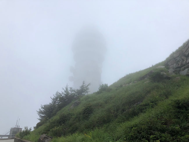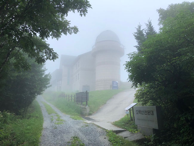 몇 구비나 돌아 올랐을까? 저만치에 거대한 형체가 안개 속에서 설핏 모습을 드러냈다. 소백산 강우레이더 관측소다. 지표면 근처에 내리는 비와 비구름, 우박 등을 측정하는 곳으로 전국 9개 관측소 중 이곳 소백산 관측소(해발 1,357m)가 가장 높은 곳에 자리하고 있단다.