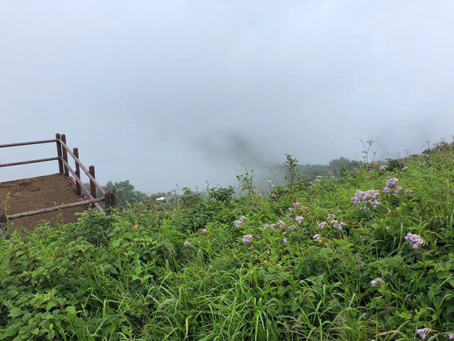 강우 레이더 관측탑과 이웃해 있는 연화봉 대피소로 오르는 길, 산비탈을 수 놓은 야생화가 산들바람에 손짓하듯 객을 반긴다. 대피소 전망데크에 섰지만 운무는 지척의 레이더 탑까지 삼켜버릴만큼 짙어 냉큼 소백산군의 속살을 보여줄 것 같지 않다. 어쩌면 '운무의 향연'이 오늘 소백의 레퍼토리가 아니었을까? 그렇게 스스로를 달래며 대피소를 내려섰다.