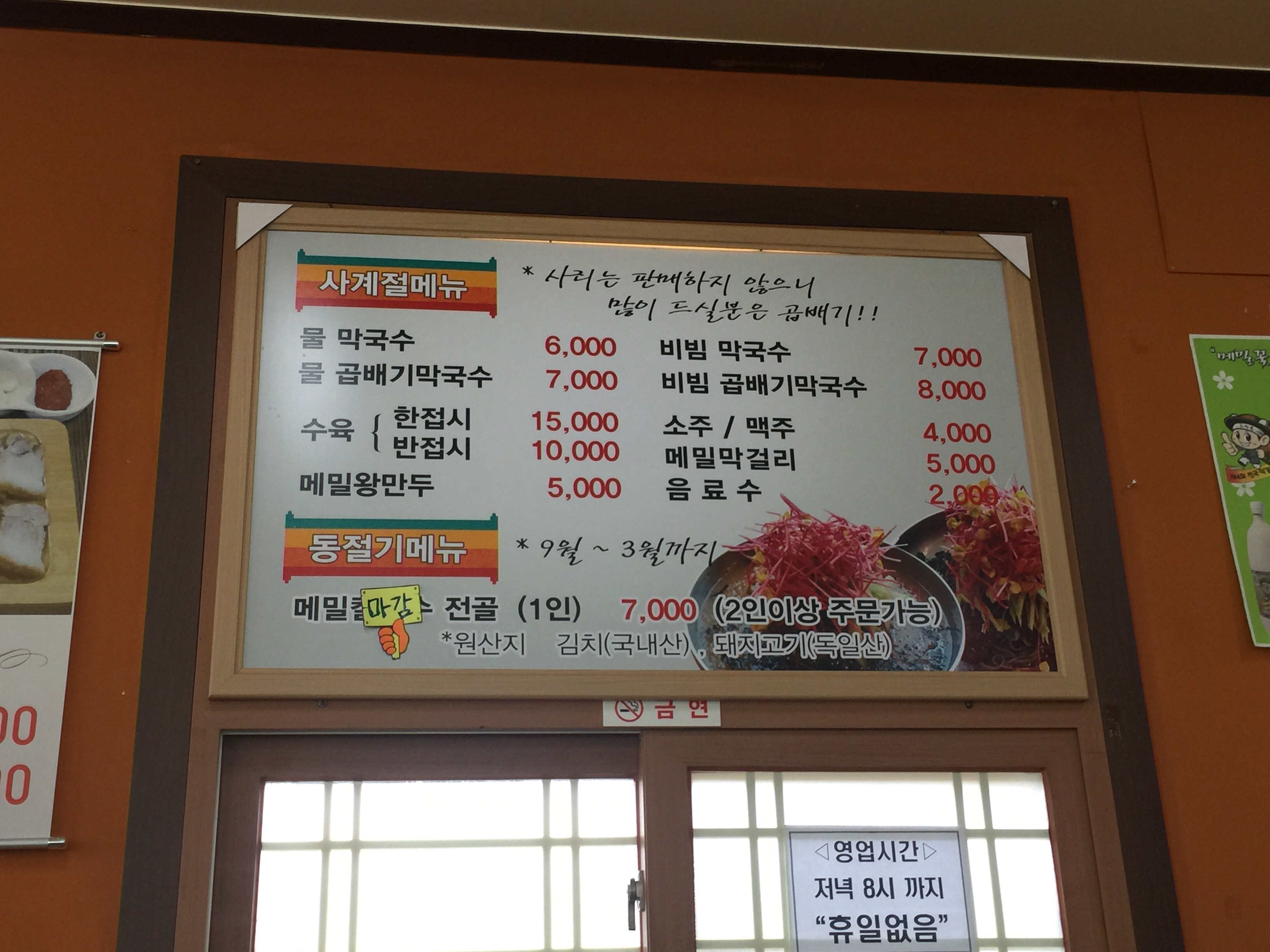 메뉴 입니다. 비빔 막국수와 물 막국수 입니다. 거기에 플러스 만두를 먹으면 금상 첨화죠..