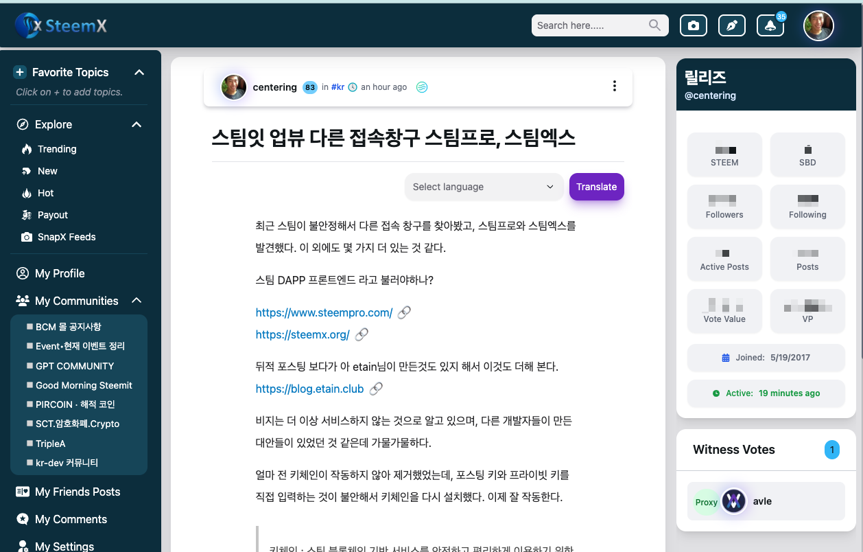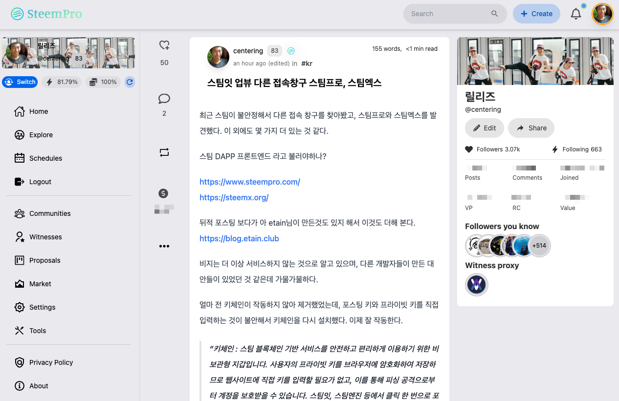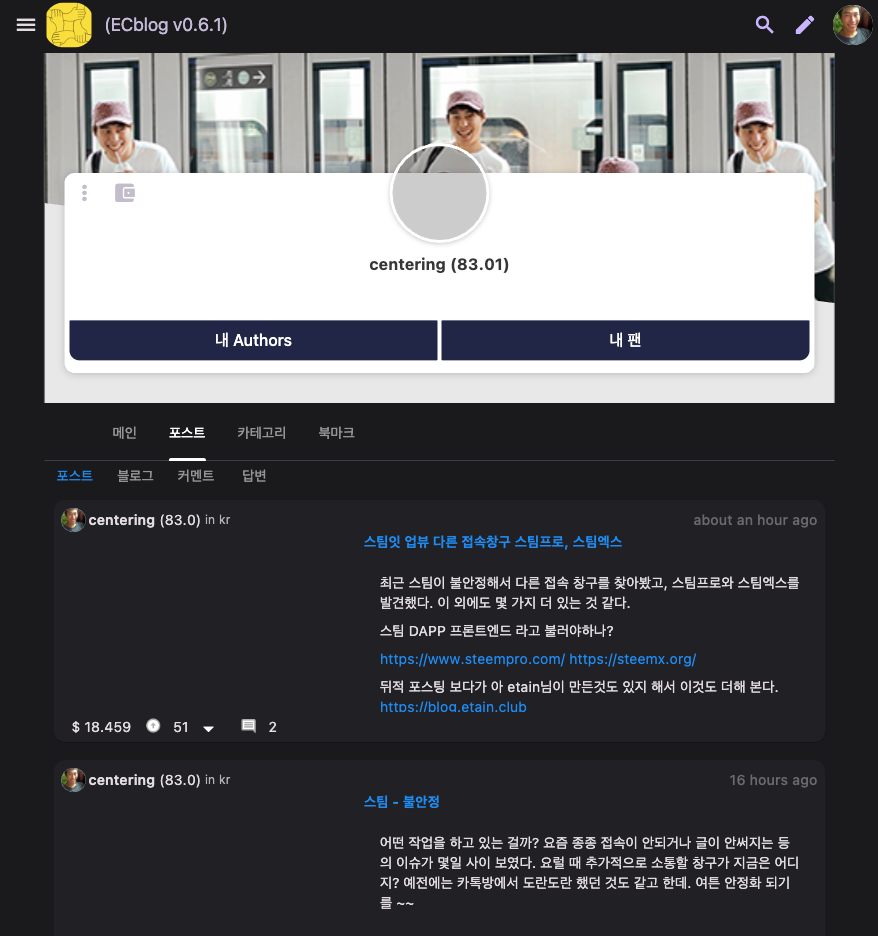 스팀 안정화 작업을 진행 중이라고 하니 결과를 기다려본다. 어쨌든 스팀잇은 오래 사용해온 플랫폼이라 익숙하고 안정적으로 느껴진다.