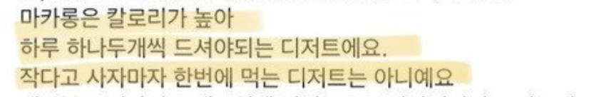 주인백 : 마카롱은 하루에 하나두개씩 드셔야하는 디저트 껄껄가게 주인의 글을 본 손님이 자기를 저격하는 거냐며, 기분이 나쁘다고 주인 인스타에 댓글을 담