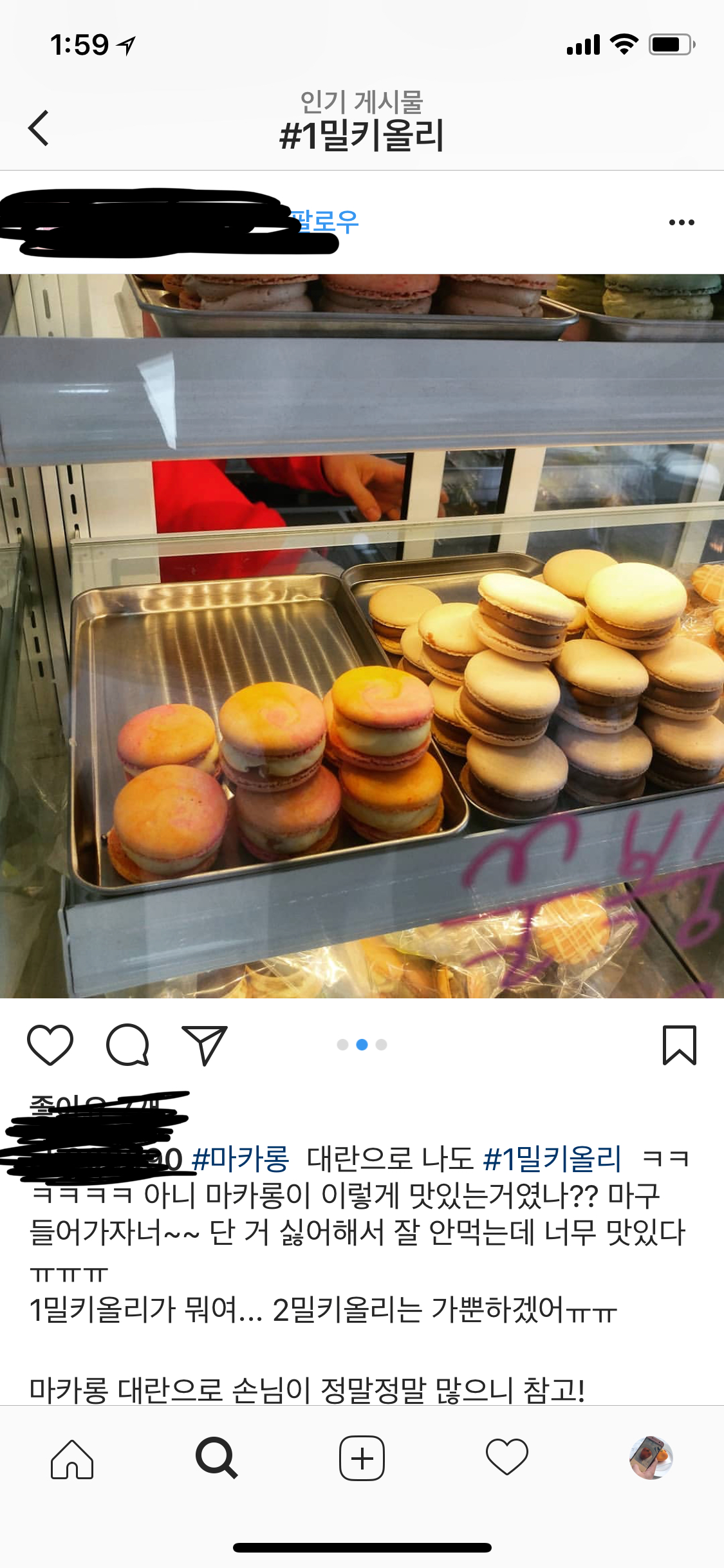 한 손님이 밀키올리 마카롱이 너무 맛있어서 앉은자리에서 10개를 먹었다며 인스타에 후기를 씀