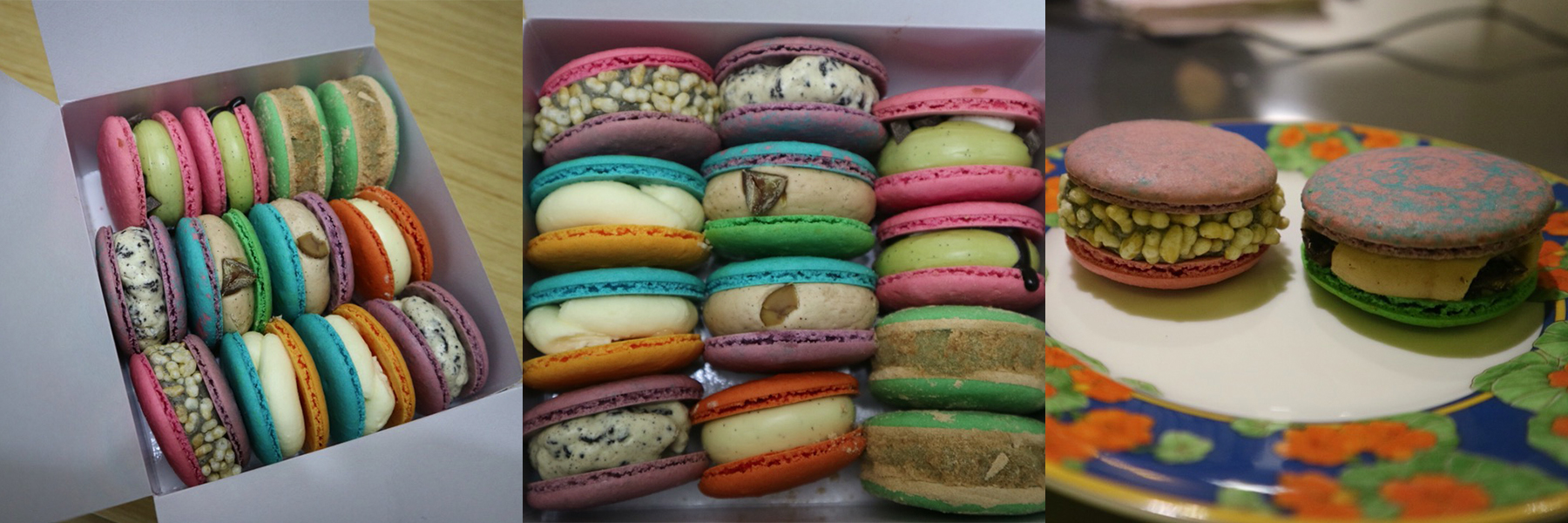 돼지바 마카롱, 바질 토마토 마카롱, 크림브륄레 마카롱, 호떡 마카롱,