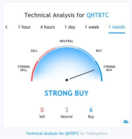 실제로 퀀트 코인에 대한 기술적 분석 전문 지식은 없습니다. 그러나 다음은 트레이딩뷰의 여러 트레이더 및 분석가의 QNT에 대한 총 등급입니다.
