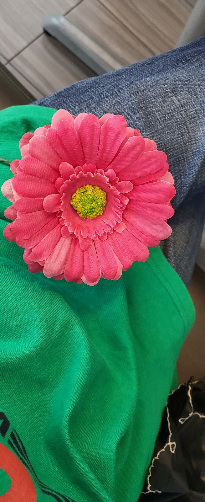 점심 먹으러 나갔다가 고급스런 결혼식장 앞에서 주웠다. 화려한 화환에서 한 송이 떨어져 있었다. 생화인 줄 알고 주웠는데 생화보다 이뻐서 하루 종일 기분이 너무 좋았다. 돈을 주워도 이보다 기분이 좋을까 싶게. 밥 먹고 오는 길에 하나 더 없나 봤는데 없었어. ㅎㅎ 직원이랑 눈이 마주 쳤는데 내가 꽃을 떼어냈나 의심하면 어쩌나 했다. 그렇게 생각할 지도 모른다고 생각했다. 아무튼 기분 짱!
