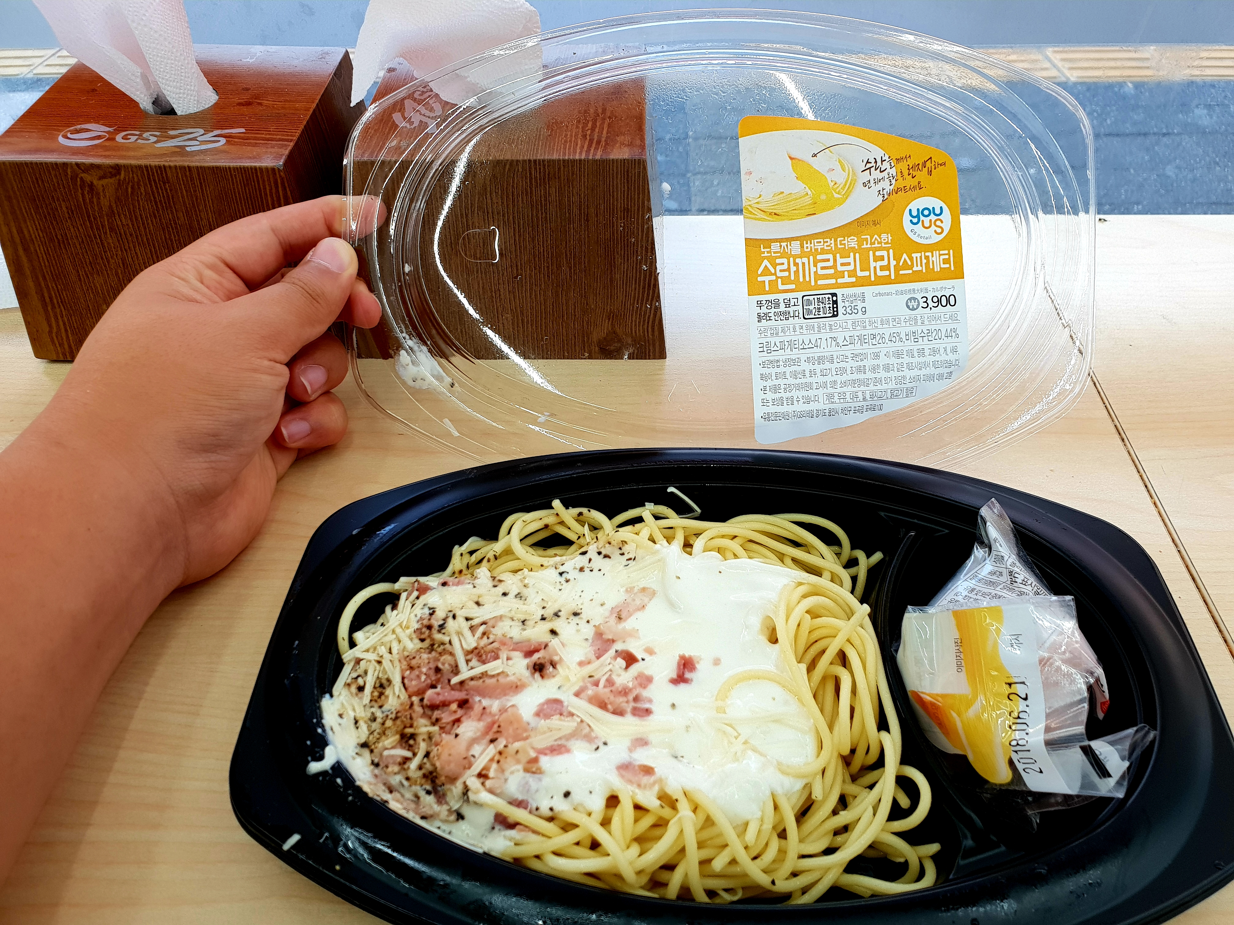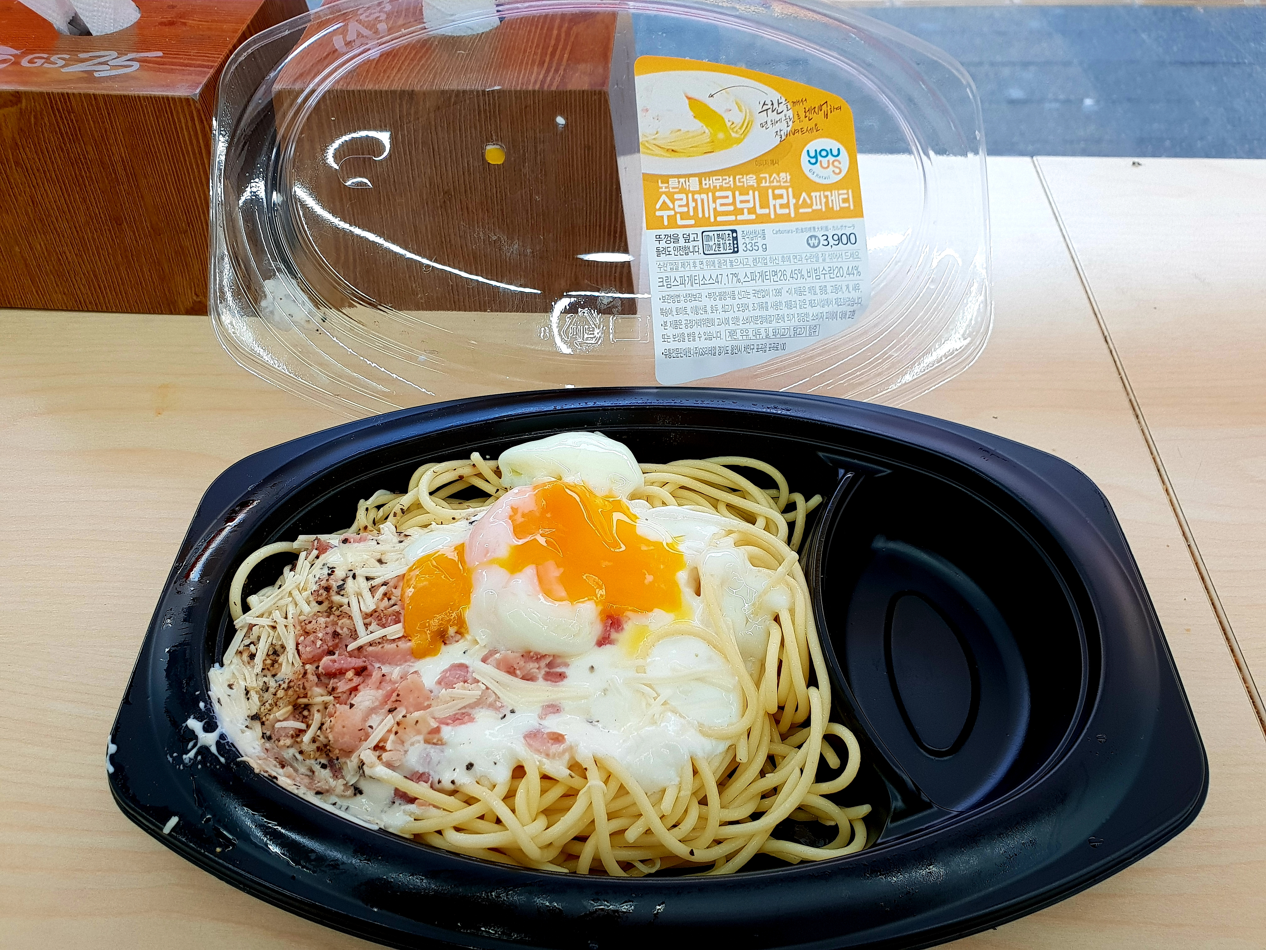 편의점 신상 리뷰(gs25 수란까르보나라)