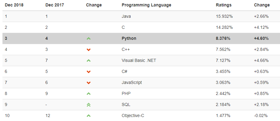 [일상]2018년 12월 프로그래밍 언어 순위.