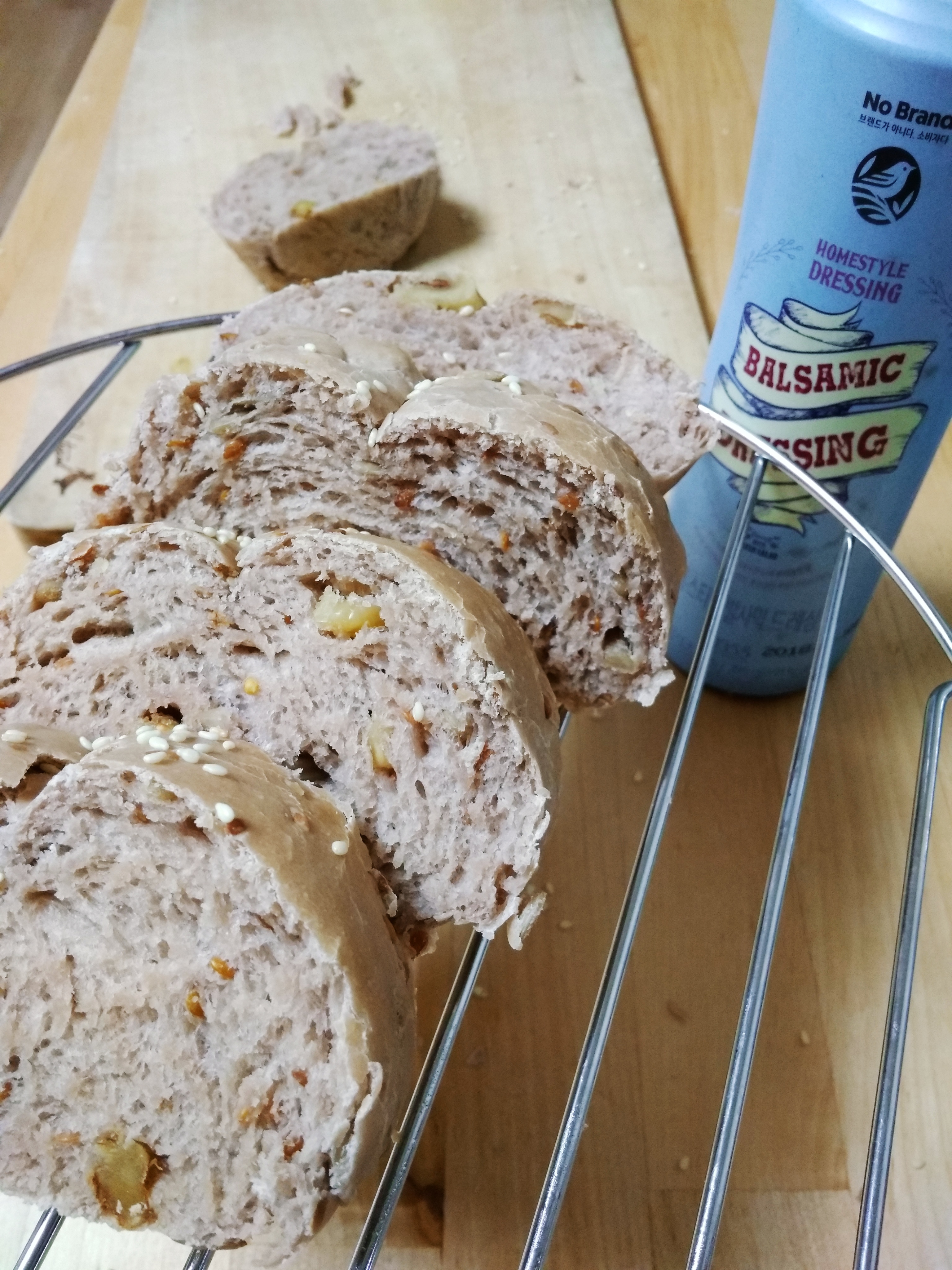 통밀빵은 100% 우리밀 통밀가루랑 호두, 해바라기씨랑 볶은 아마씨를 넣어서 한층 더 고소하게 만들었다.