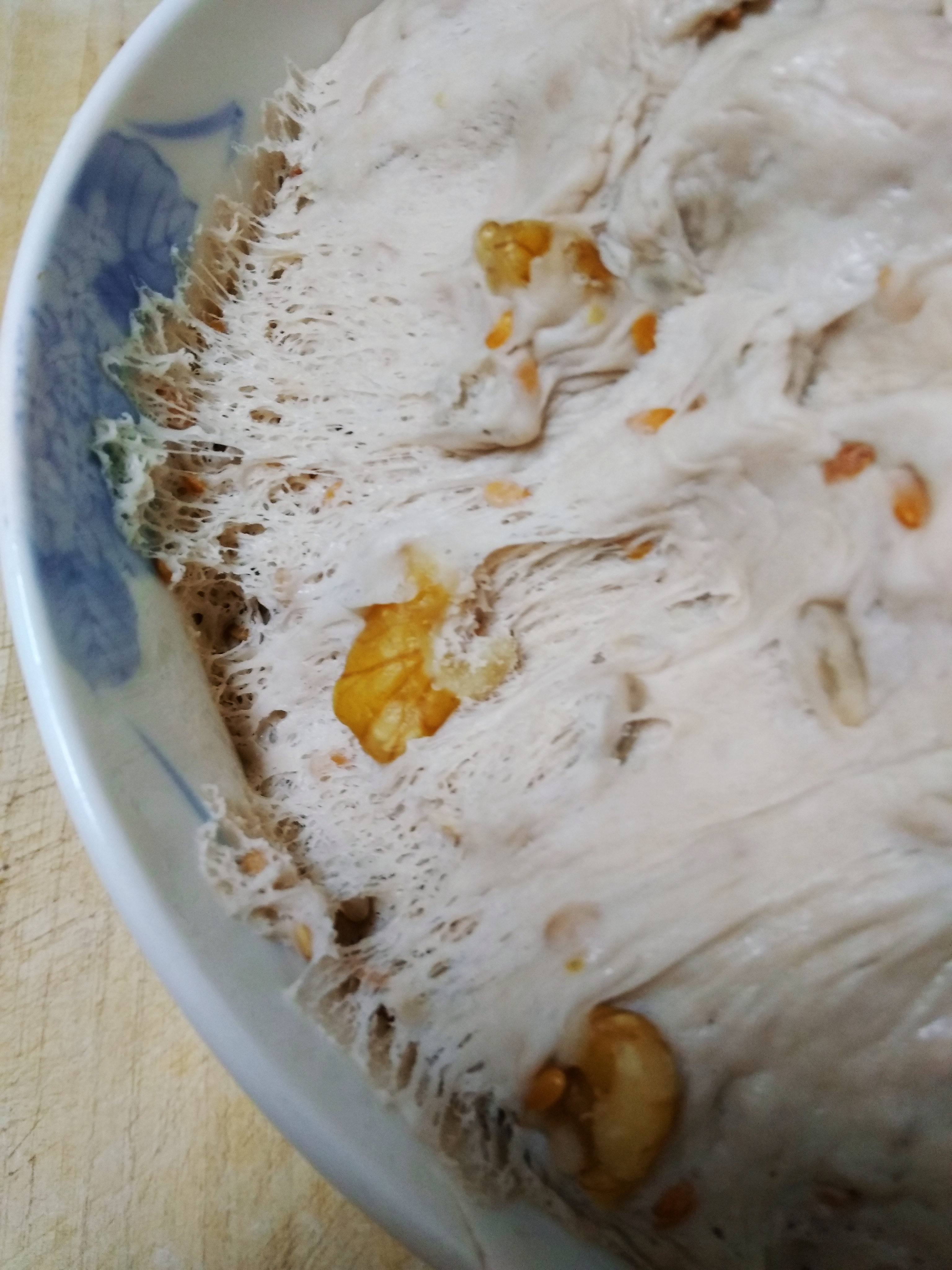 5.보온밥솥에 물을 조금 넣고 반죽을 담은 그릇을 넣는다. 보온 기능을 켰다가 3분후 끄기. 발효가 무척 잘 될것임! 20분 정도면 발효완료.