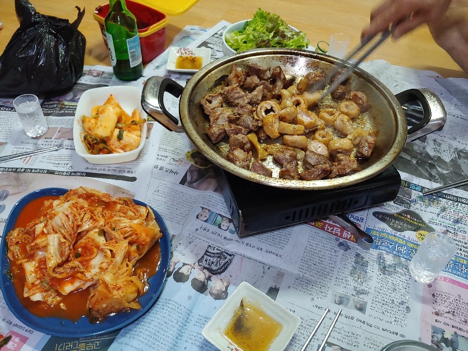 뭘먹을까 고민하시다가 경동시장에서 사오신 막창과 갈매기살ㅎㅎ 오예