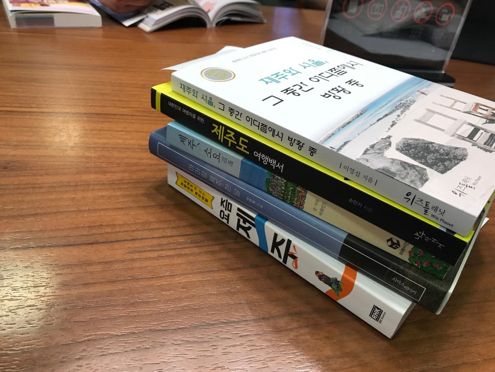 제주여행 가이드북 혹은 한 달 살기와 관련한 책들이 시중에 얼마나 있는지부터 찾아봤다. 대형서점을 방문했다. 제주 관련 키워드를 검색해서 볼만해 보이는 책을 5~6권 추려서 자리에 앉아 훑어봤다. 2권 정도로 압축됐다. 하나는 베스트셀러 가이드북이고, 하나는 아이와 함께 제주 한달살기 컨셉의 여행기였다. 육아적 관점은 아무래도 나와 맞지 않아서 가이드북만 샀다.