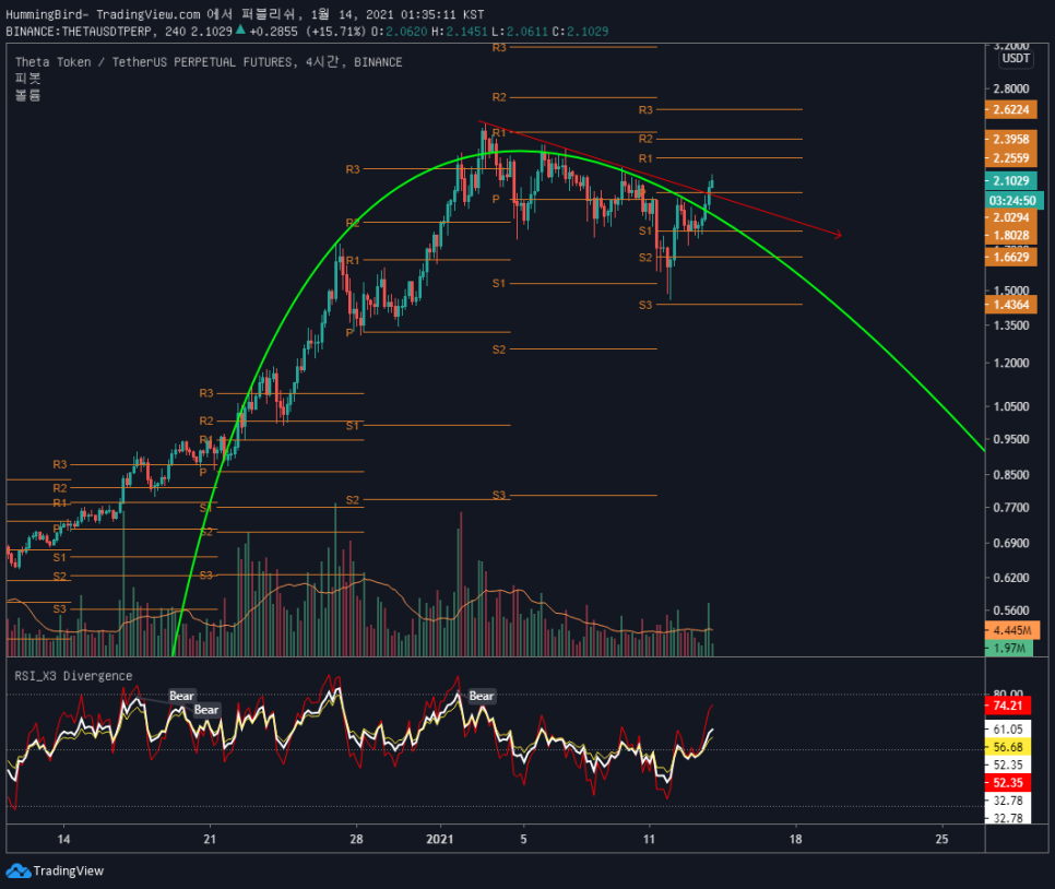 손익비가 좋아보임 피봇 리테스트 혹은 하락추세선 리테스트에 짧게 잡아볼만 한듯