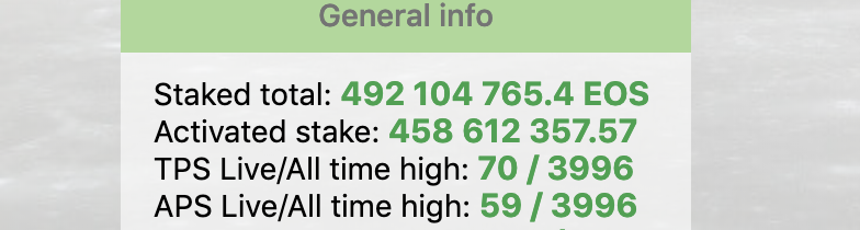 메인넷이 진행 된지 8개월이 지난 2019년 2월 현재 메인넷 3996 TPS, 테스트 넷 9179 TPS를 기록 하여 현존하는 블록체인 중 가장 활성화된 블록체인이 되었습니다. (가장 활성화된 블록체인임에도 불구하고 아직 확장성 문제를 해결 했다고 아직은 볼 수는 없습니다. EOS 생태계는 현재도 확장성을 위한 다양한 솔루션들이 준비/진행되고 있습니다.)