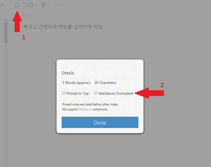 태그 기능을 지원하며, 자체 검색으로 자신의 문서 내 텍스트를 검색할 수 있습니다.