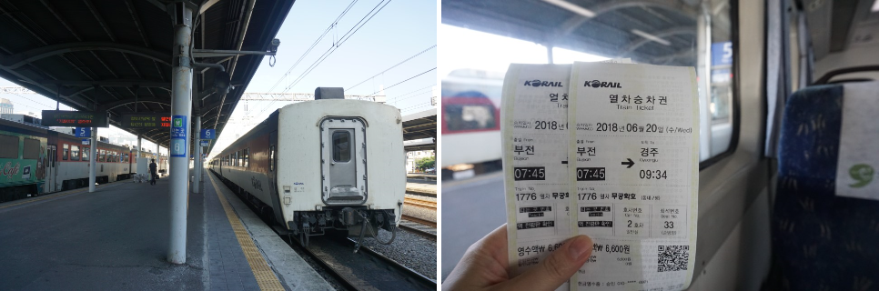 이렇게 3가지의 경우가 있고 저흰 오랜만에 기차여행이나 하자면서 부전역에서 무궁화호를 타고 가기로 하였습니다.