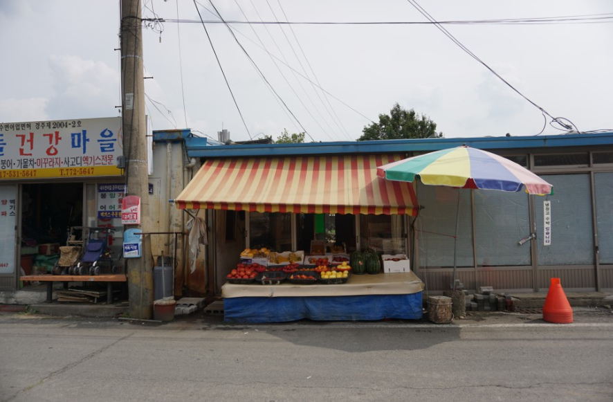 새로 생겨나는 건물들 중에 예전 그대로 모습의 과일가게도 있네요.