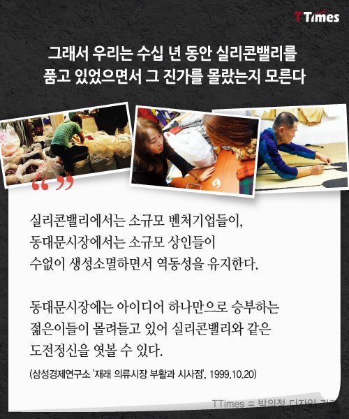 동대문과 실리콘밸리의 공통점 4가지debak2 (43)in #kr • 8 years ago (edited)스타일난다, 난닝구, 임블리 등 동대문 패션에서 시작된 스타트업이 잇달아 성공신화를 쓰고 있다. 동대문의 무엇이 이곳을 ‘스타트업의 산실’로 만든 것일까? <출처-ttimes> #kr-newbie #kr-ttimes #kr-item #jjangjjangman