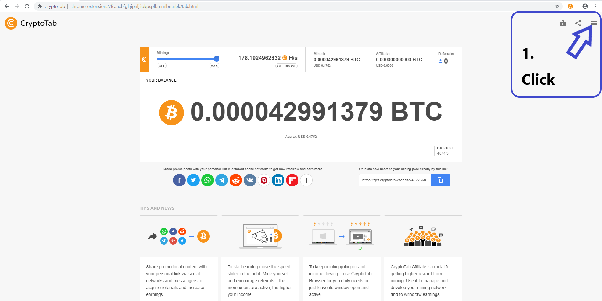 다운로드 CryptoTab 클릭하시면, 이런 창구를 볼 수 있음.