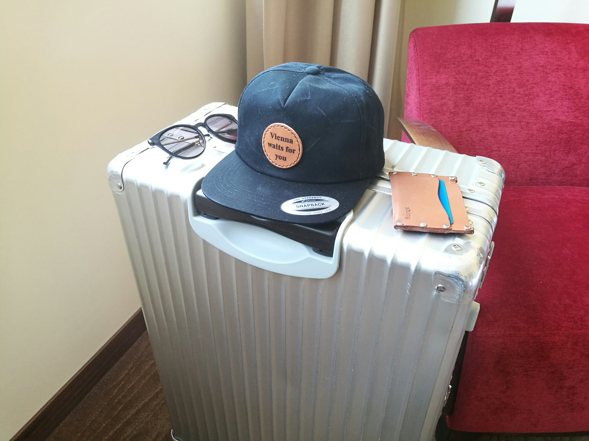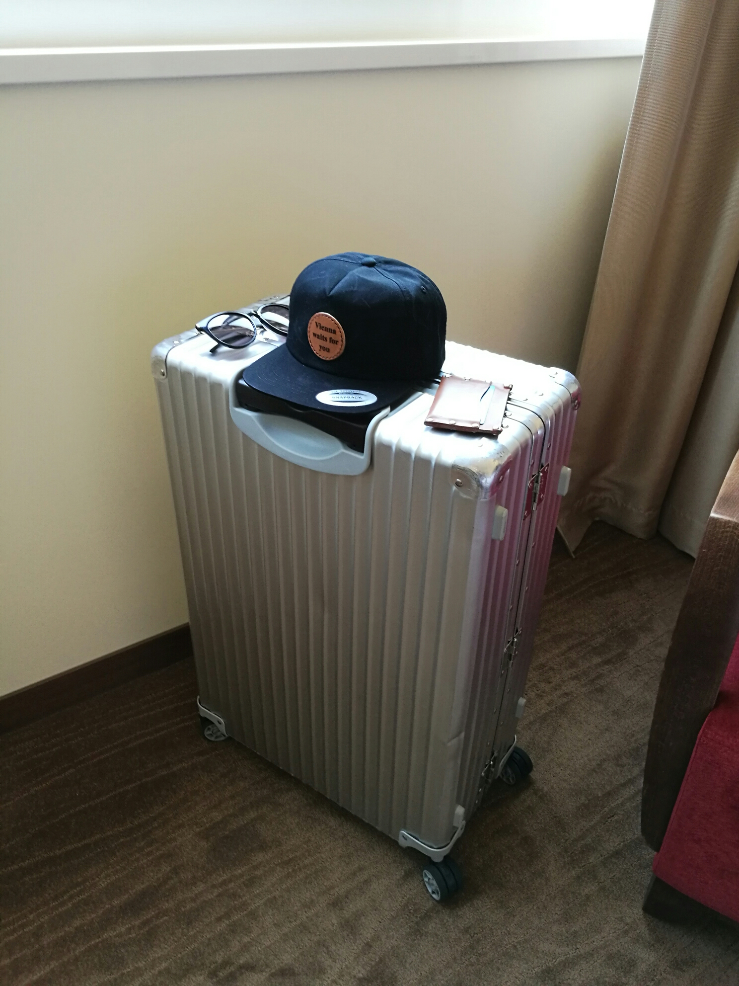 호텔에 도착해서 이번 여행을 위해 제작한 모자를 찍어봤습니다.