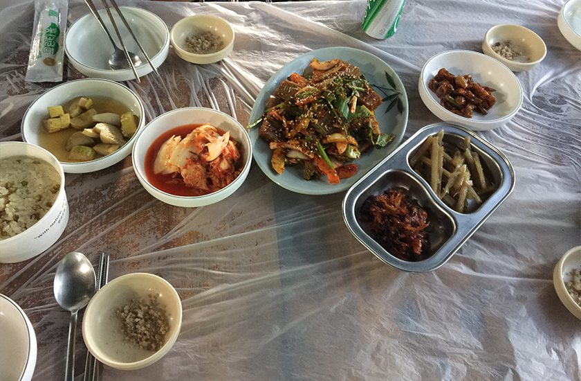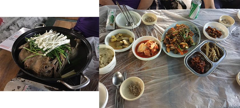 나온 반찬들.....5만원짜리 이상의 메뉴에서 이리 음식접시가 다채로운 것은 처음봤다. 만원짜리 백반집보다도 허접한 것은 나의 기분일까? 저 반찬들도 더 먹고 싶으면 접시 들고 주방까지 가야한다. 셀프니까~